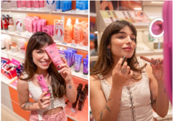 Produtos promocionados de make, skincare, perfumaria, cuidados pessoais e capilares, associados a oportunidade de experimentação no serviço de loja exclusivo