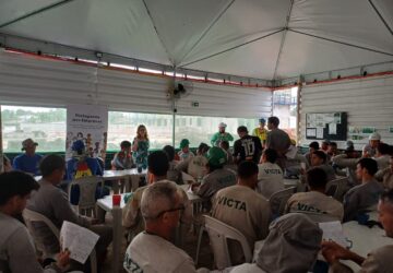 O Sinduscon Ceará promove uma palestra sobre a prevenção da violência doméstica contra a mulher no canteiro Pop Art Eusébio