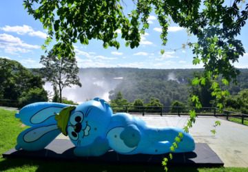A presença do Sansão, um inflável de 12 metros de comprimento, no Mirante do Vertedouro de Itaipu, encantou tanto os