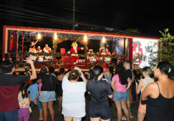 O caminhão com o coral de crianças inicia seu trajeto sempre a partir das 19h, em dias de semana, e