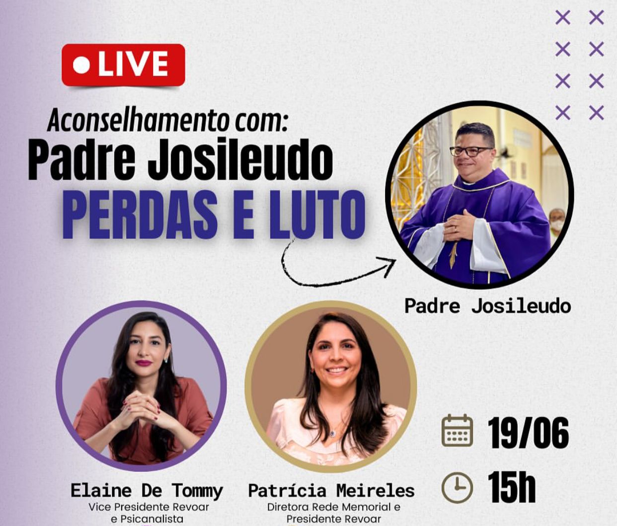 No dia 19 de junho, às 15h, a Rede Memorial Fortaleza vai realizar uma live que abordará a temática “Perdas e Luto”. No momento especial, acontecerá um debate sobre as sensações desse período delicado e como lidar com esses sentimentos. A live contará com a presença dos aconselhamentos do Padre Josileudo Queiroz. “Sabemos que a despedida de um ente querido é algo doloroso e que a saudade é um sentimento que nos acompanha eternamente. Por essa razão, traremos um momento de conforto para todos os participantes”, declara a diretora da Rede Memorial Fortaleza, Patrícia Meireles. O evento também contará com a participação de Elaine De Tomy, que trará abordagens importantes sobre como lidar com o luto, e a Diretora do Cemitério Memorial Fortaleza, que trará algumas informações sobre a Missa que acontecerá no dia 22 de junho. A live será realizada pelo Instagram https://www.instagram.com/